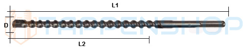 (L2)= Spiraallengte van de‚ betonboor
