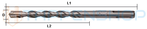 (L2)= Spiraallengte van de‚ betonboor
